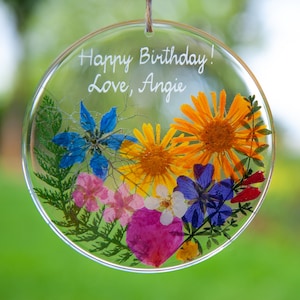 Gift for Her Birthday Gift for Mom Personalized Engraved Flower Suncatcher Gift for Woman Custom Text Resin Flower Ornament for Window & Car