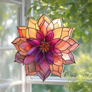 Boho Dahlia Flower Suncatcher – Stunning Stained Acrylic Decor, Handmade Lotus Window Hanging, Vibrant Artistic Home Accent, Gift for Her