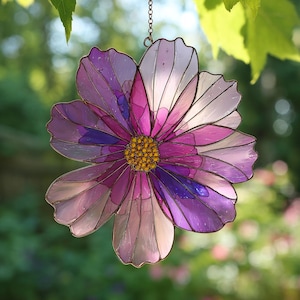 Acrylic Cosmos Flower Suncatcher, Pink Purple Floral Window Hanging, Translucent Sunlight Catcher, Handmade Botanical Gift Decor