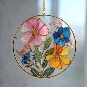 Spring Flowers Wall Art Suncatcher Resin Flowers Window Decoration Mothers Day Gift Garden Lover Gift