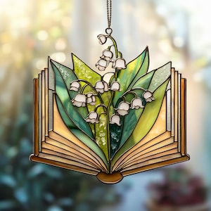 Lily of the Valley Handmade Suncatcher, Faux Stained Glass Book Window Hanging, Literary Botanical Gift, Gift for Her, Book Lovers
